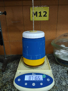 - Se mide la masa M2 del calorímetro con el agua y el sólido problema y se anota. La masa del sólido ms se obtiene por diferencia: ms = M2 - M1